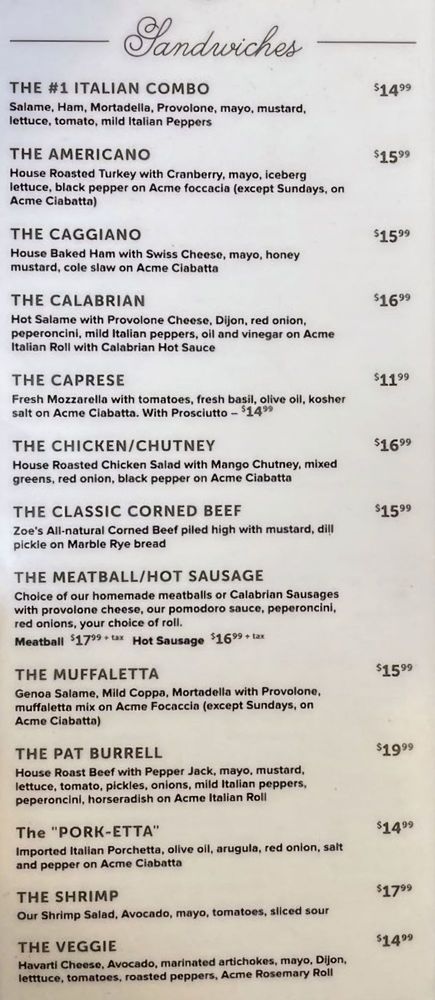 Introducing the menu at Lucca Delicatessen, a San Francisco staple since 1929, known for their handcrafted sandwiches made with freshly cut meats. While the wait time can be long due to the intricate preparation process, the quality and taste make it worth it. Customers rave about favorites like the Caprese with prosciutto on focaccia bread and the Pork-etta on a soft ciabatta roll. The use of high-quality ingredients like fresh mozzarella and olive oil elevate the flavors of each sandwich. With friendly customer service and a cozy atmosphere, Lucca Delicatessen is a must-visit for sandwich lovers looking for a unique and delicious dining experience. Don't miss out on their extensive menu options and be sure to order ahead to avoid the weekend rush.