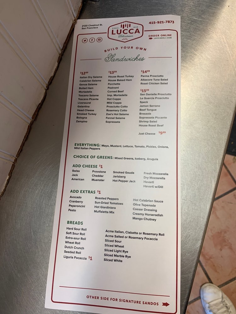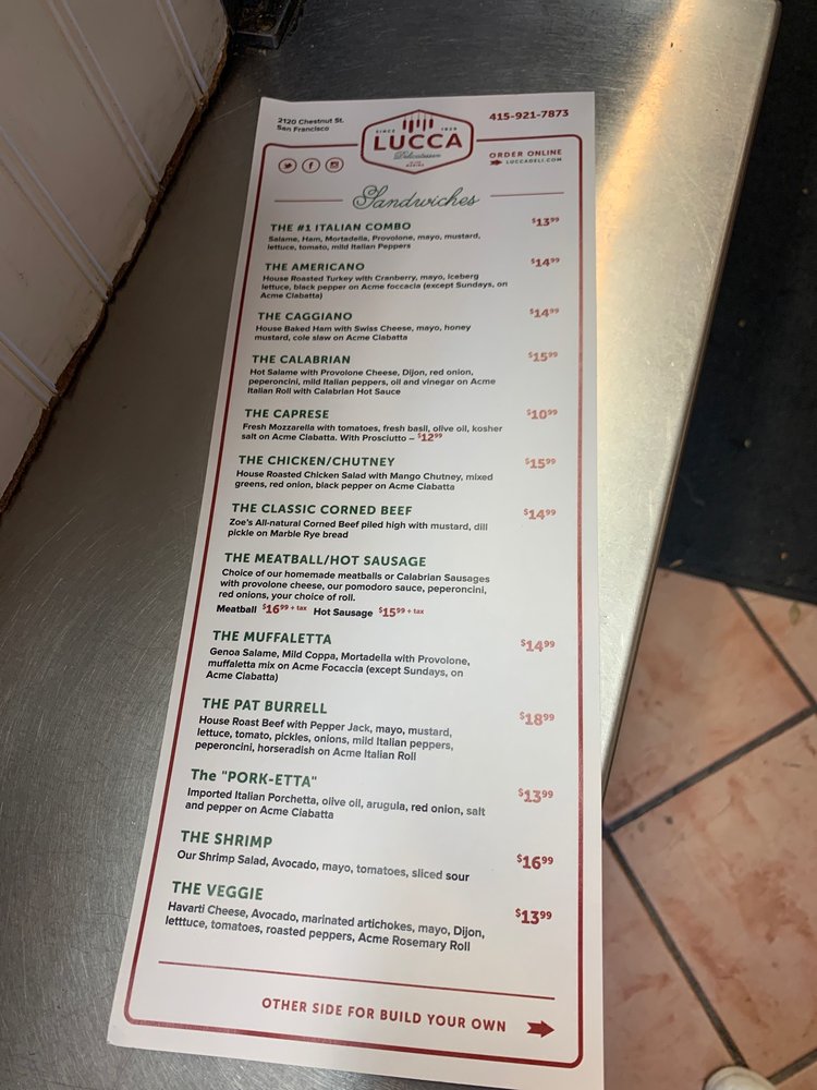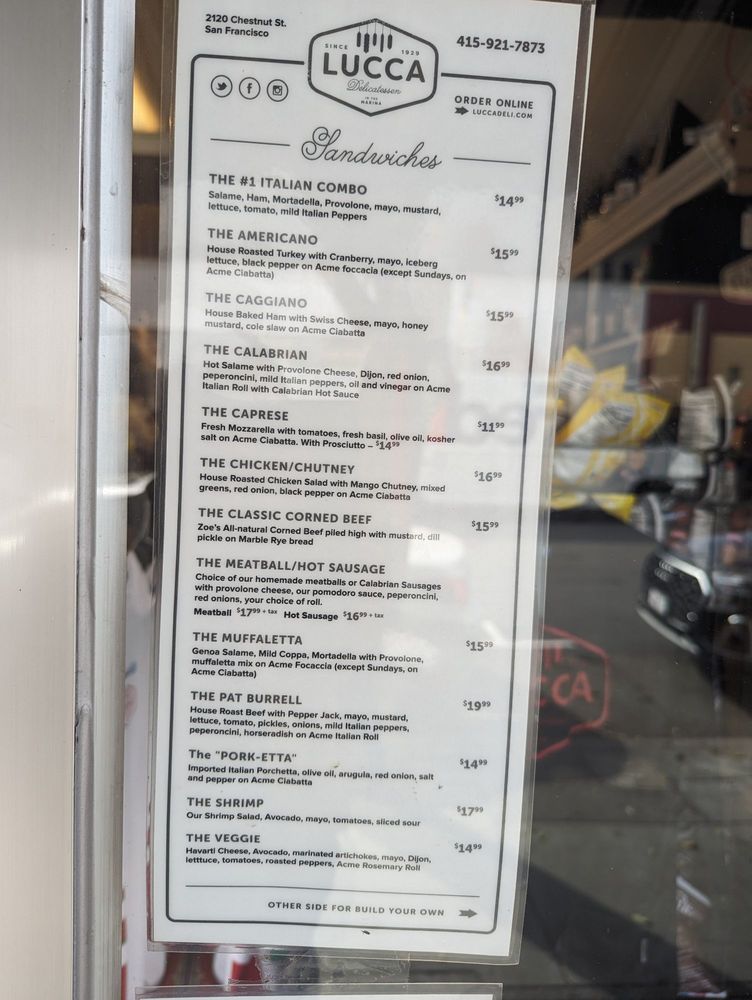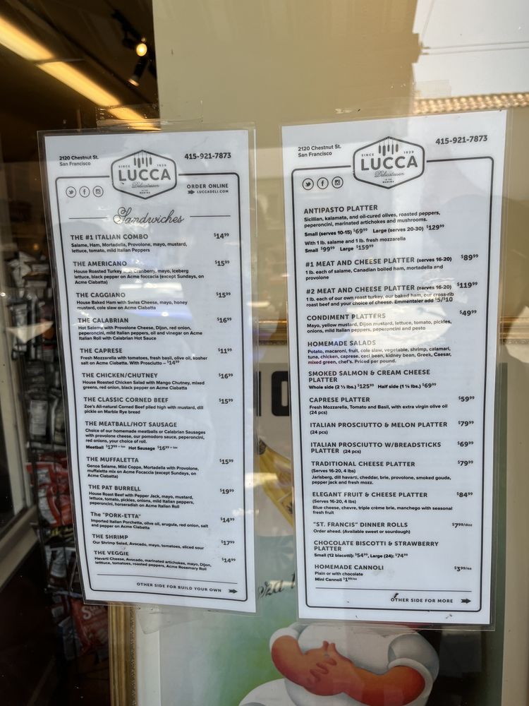 Lucca Delicatessen Menu (Update 2025)